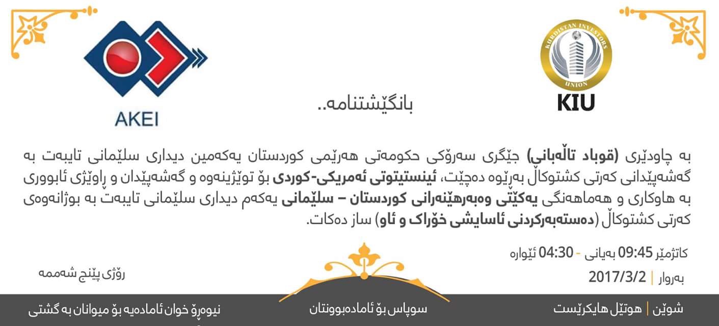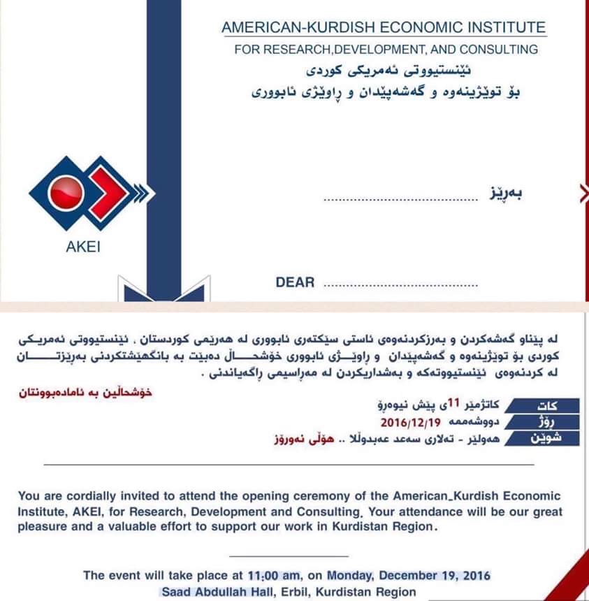 American-Kurdish Economic Institute, AKEI, for Research, Development, and Consulting has been granted an official permit to operate in Kurdistan Region.